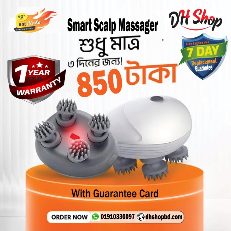 Smart Scalp Massager With Red Light Sensor – স্মার্ট স্কাপ ম্যাসাজার – (১ বছরের সার্ভিস ওয়ারেন্টি)