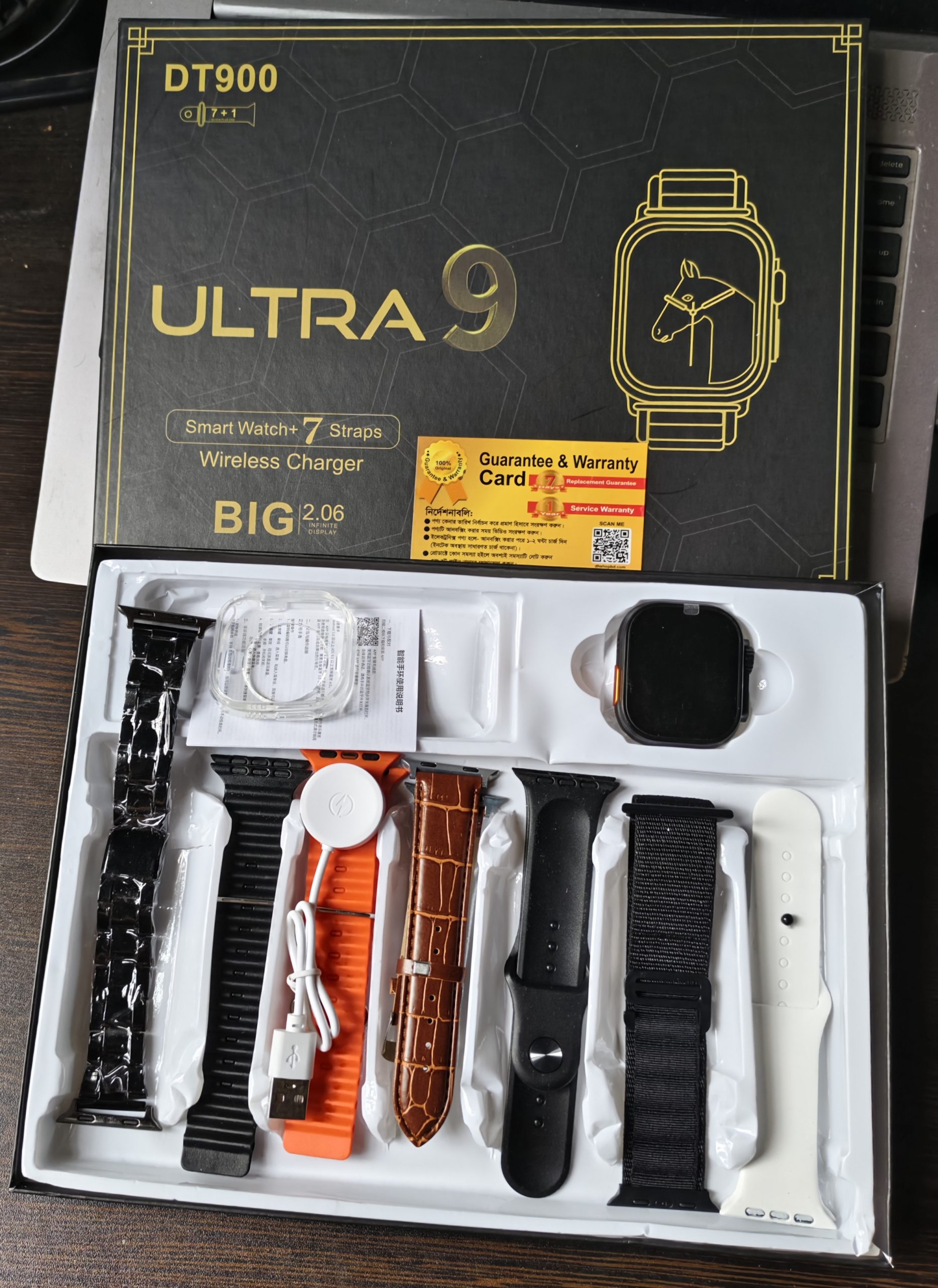(হেডফোন/Earbuds ছাড়া) DT900 Ultra Smart Watch 07 Straps+01 Back-Cover.