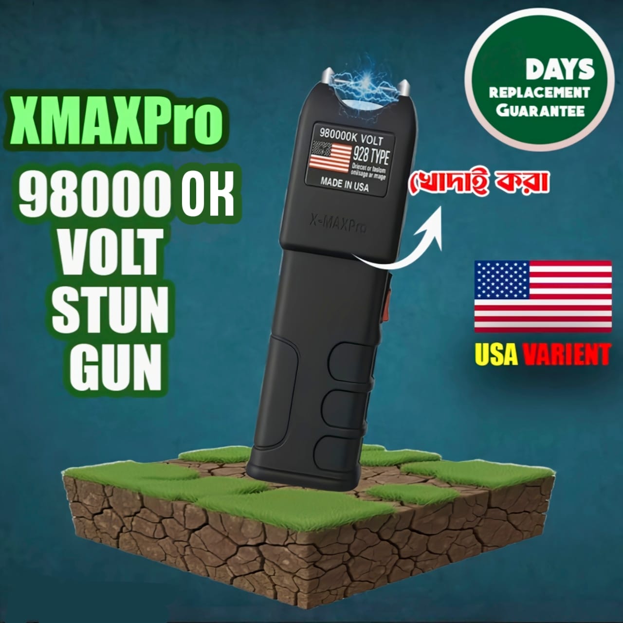 High-Electric Stun Gun –2-in-1 Electric Shock+Flashlight( U.S.A 🇺🇸VARIENT-980000k Volt) X-MAX Pro Shock Stun Gun.