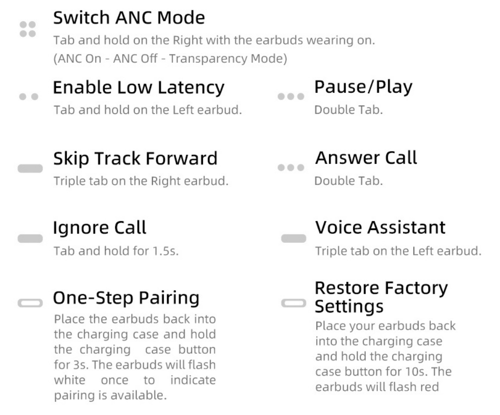 Playtime Time(earbuds): 8.5H (ANC off), 7.5H (ANC on)